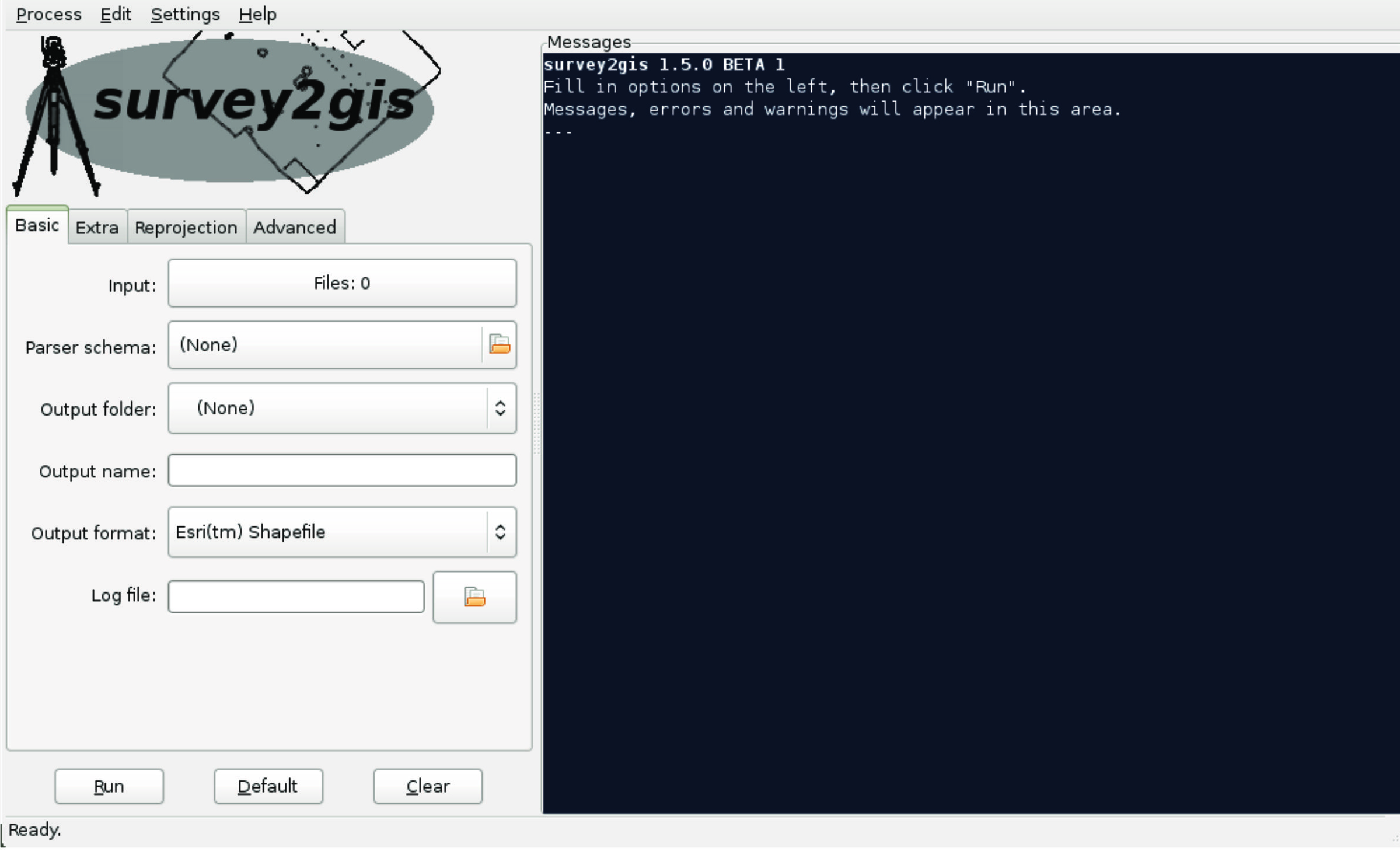 - Run “survey2gis” without any options: the GUI will start with default option settings.